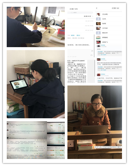 绘画系主任何亚峰老师疫情期间滞留在武汉,一家五口人在武汉受到严峻的疫情影响,生活物资短缺,防疫物资短缺,要照顾年迈体弱的老人和年幼的两个孩子,身心俱疲,在接到学院的“延期不延教,延期不延学”的通知后,克服受疫情的影响和个人生活上的一些困难,立即积极投入线上教学,率先垂范,发挥一名共产党员的先锋模范作用,她利用有限的条件,依据教材提前录制教学视频,让学生跟随视频一起学习绘画技巧、了解美术文化知识。何老师本学期主讲课程有公共课《美术鉴赏》、专业课《工笔花鸟画》、《中国画艺术赏析》等,教学中通过“师——机——生”多维互动促进学生深度学习,坚持“学生为中心”,课前做好调研和安排,课中做好学生的组织管理、互动和答疑,课后做好对学生学习效果的评估与反馈。依托超星学习通APP等现代信息技术手段,多渠道、多方式开展线上授课和学习等在线教学活动,提前进行教学视频录制工作,及时上传授课资料,以供学生在线学习讨论。