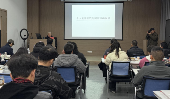 12月12日,我院特邀河南省美术家协会副主席、著名画家丁昆先生于实训楼二楼艺言堂作学术报告。学院全体研究生、部分专业教师及“国培计划”学员参加,院长邹东升主持。