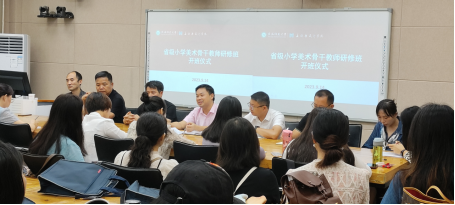 9月14日上午,我院在艺术楼217举行“国培计划”省级小学美术骨干教师研修班开班仪式。我院党委书记兰洋,党委副书记周刚,院长邹东升,副院长张伟、张江波、董建义,国培首席专家甘露,研修班班主任陈馨及全体研修班学员参加了开班仪式。开班仪式由陈馨主持。