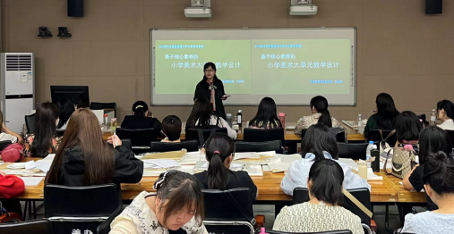 2023年9月18日上午八点半,williamhill威廉希尔“国培计划”骨干教师培训班开课。本次课程由朱跃华老师讲授,以《核心素养下的小学美术大单元教学设计》为主题。朱跃华老师是中小学美术教研员,曾多次执教省市级优质课,是省市级学术技术带头人、省市级省培骨干教师讲师团讲师、河南省美术骨干教师、河南省小学美术网络名师工作室主持人、河南省中小学美术优质课评审专家组成员、信阳市学术技术带头人,也是信阳师院美术硕士的校外导师、浉河区美协副主席。