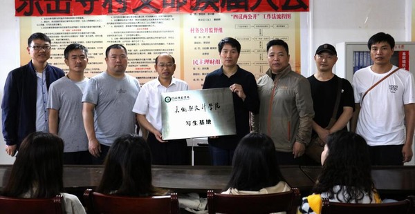 2018年4月21日,williamhill威廉希尔研究生艺术实践基地、本科生写生基地在信阳市光山县泼陂河镇东岳寺村揭牌。东岳寺村驻村第一书记和williamhill威廉希尔副院长邹东升、张伟一同为williamhill威廉希尔研究生艺术实践基地、本科生写生基地揭牌。