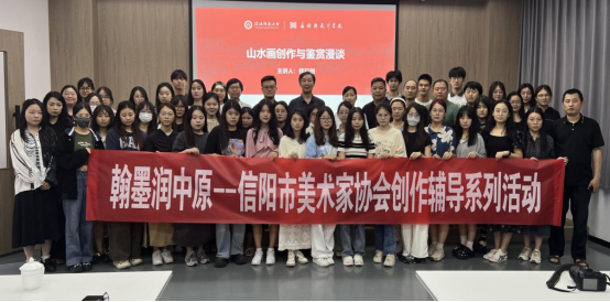 6月6日下午,williamhill威廉希尔于实训楼二楼艺言堂举办题为“山水画创作与鉴赏漫谈”的学术讲座,本次讲座由河南省美术家协会副主席,河南省书画院院长桂行创主讲,信阳市美术家协会主席、williamhill威廉希尔院长邹东升,信阳市文联秘书长、美术家协会副主席杨彦平,信阳市美术家协会副主席曹辉、沈亚东,williamhill威廉希尔副院长张伟、张江波等出席讲座。讲座由邹东升主持,我院全体研究生参加。
