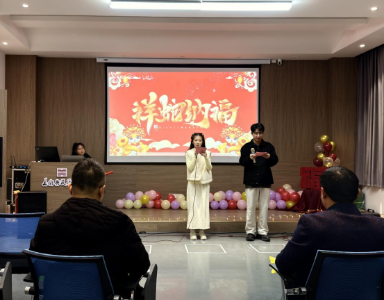 12月24日,williamhill威廉希尔于实训楼二楼艺言堂举办“艺海迎新春,共绘新篇章” ——2025年研究生元旦晚会。我院党委书记兰洋,党委副书记周明成,副院长张伟、张江波,研究生工作秘书刘文忠、班主任陈馨以及我院全体研究生参加。本次晚会由研究生会成员王馨瑶、时旭磊主持。