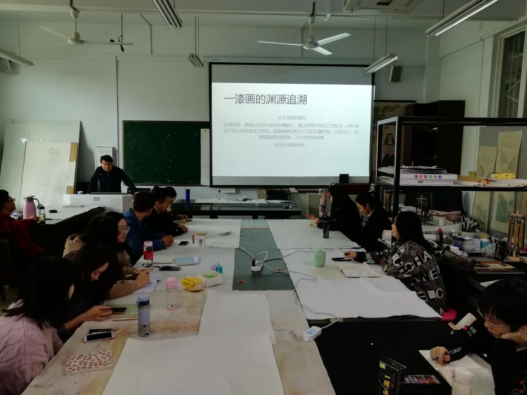 11月13日下午,我院赵志杰老师在艺术楼研究生教室作了题为“浅谈中国漆画发展现状及代表性画家”的专题学术讲座,我院全体研究生参加了此次讲座。