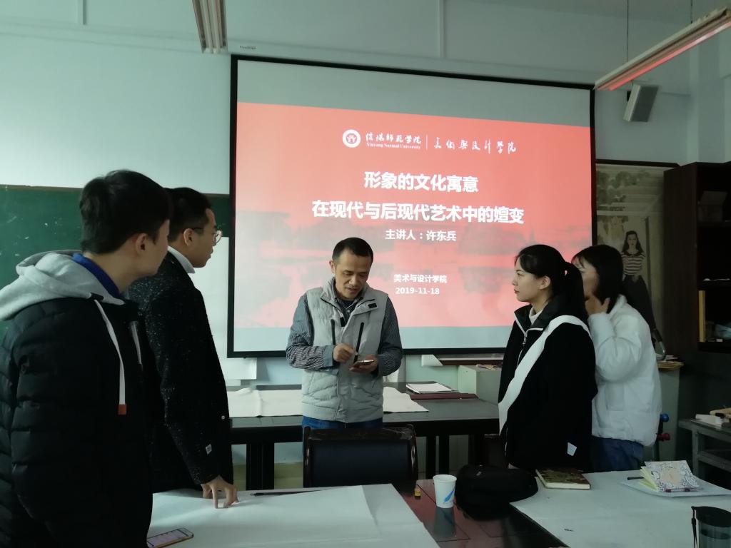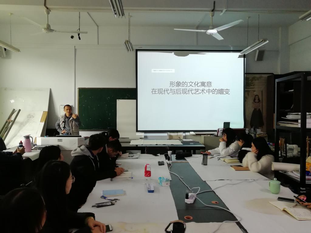11月18日下午,我院许东兵博士在艺术楼研究生教室作了题为“形象的文化寓意在现代与后现代艺术中的嬗变”的专题学术讲座,全体研究生参加此次讲座并积极讨论。
