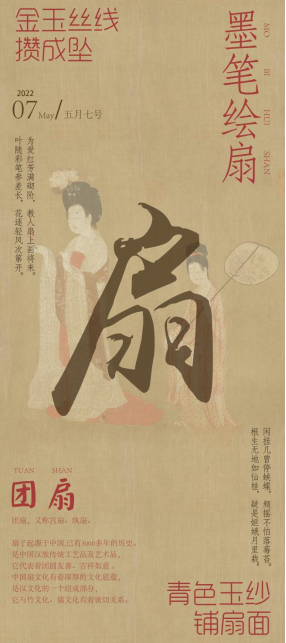 团扇轻摇,是清风徐徐,团扇掩面,是情愫默默。扇子起源于中国,已有3000多年历史。是中国汉族传统工艺品及艺术品,它代表着团结友善、吉祥如意。中国扇文化有着深厚的文化底蕴,是汉文化的一个组成部分,它与竹文化、儒文化有着密切关系。小小的扇面,投射心影,传达会悟,精巧手绘,静静描摹,一方娟扇咫尺间,意味无穷自斑斓,想象这该是古人轻罗小扇扑流萤的时节了。5月7日,让我们在一棵树广场约您一起与遗失千年的中国美重遇。