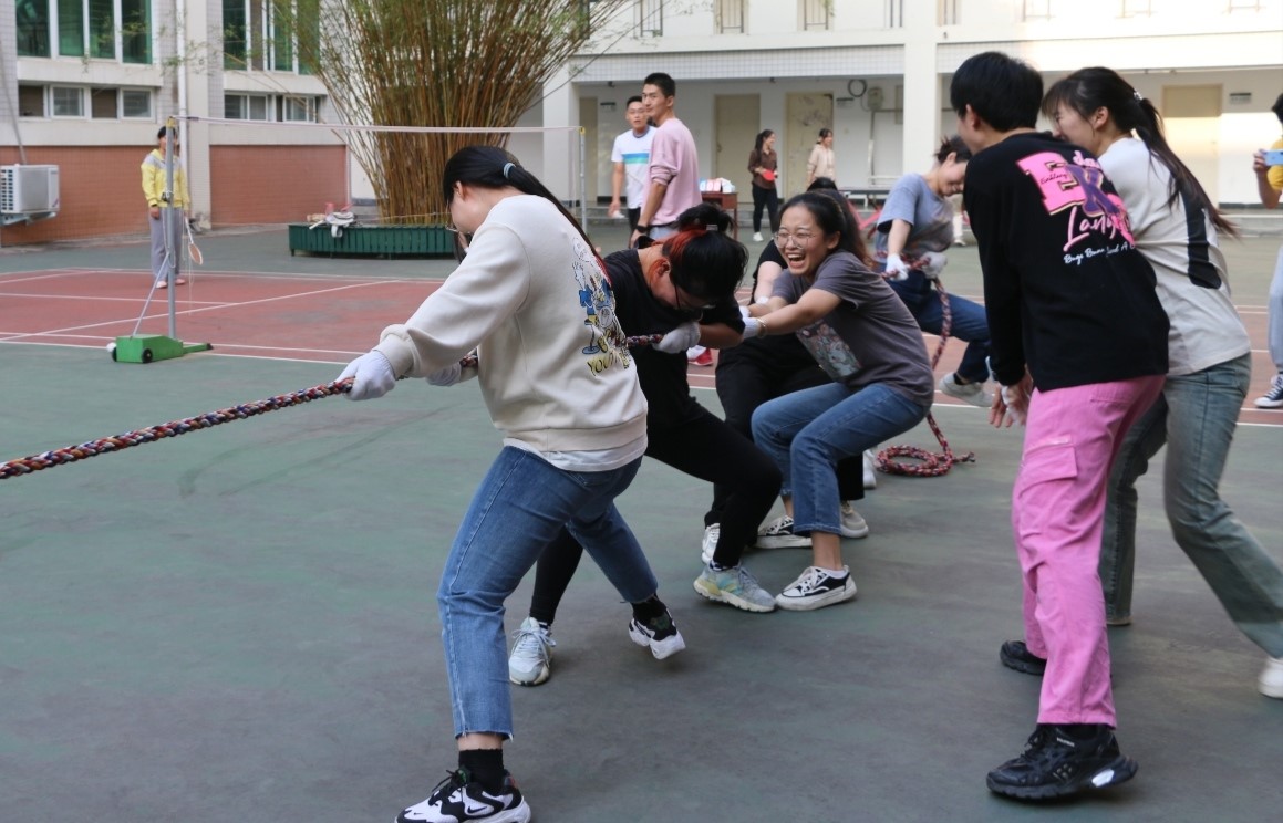 与传统运动会相比,“趣味运动会”将竞技与娱乐相结合,着重鼓励学生合作参与,充分发扬团体合作精神,设置了如“踩气球”、“拔河”、“集体跳大绳”等趣味性和协作性于一体的比赛项目。我院研究生们个个都表现出了极佳的运动状态,对每一个项目都努力拼搏,团结奋斗;旁边加油声也此起彼伏,场面热闹激昂,精彩纷呈。