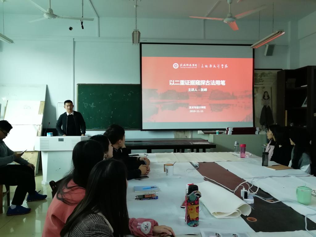 11月11日下午,williamhill威廉希尔研究生教室座无虚席,研究生学术讲座活动如期举行,张峰老师应邀为我院研究生作了题为“以二重证据窥探古法用笔”的学术讲座,学院全体研究生到场聆听了此次讲座。