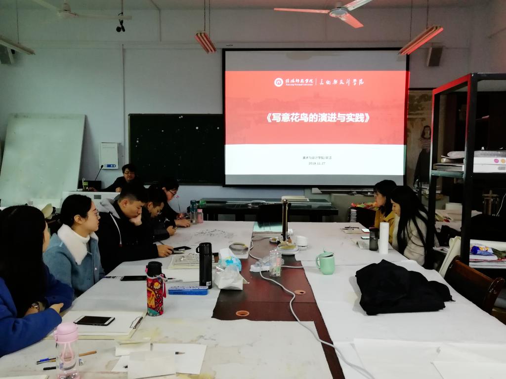 11月27日上午,我院翟洁副教授在艺术楼研究生教室作了题为“写意花鸟的演进与实践”的专题学术讲座,全体研究生参加此次讲座并积极讨论。