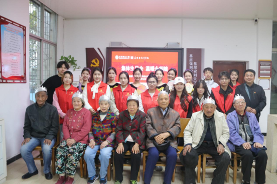 当天正值立冬时节,为了给社区的高龄老人送去温暖与关怀,我院还特别在华森社区党群服务中心为七位老人举办了一场别开生面的生日派对。伴随着主持人铿锵有力的开场和震耳欲聋的掌声,歌曲和民族舞表演轮番上演,歌声悠扬,舞姿翩翩,为老人们带来了无尽的欢乐与温馨。同学们与寿星们其乐融融地分吃蛋糕,共同庆祝这一特殊的日子,让爱与爱的传递在这一刻变得具象而生动。