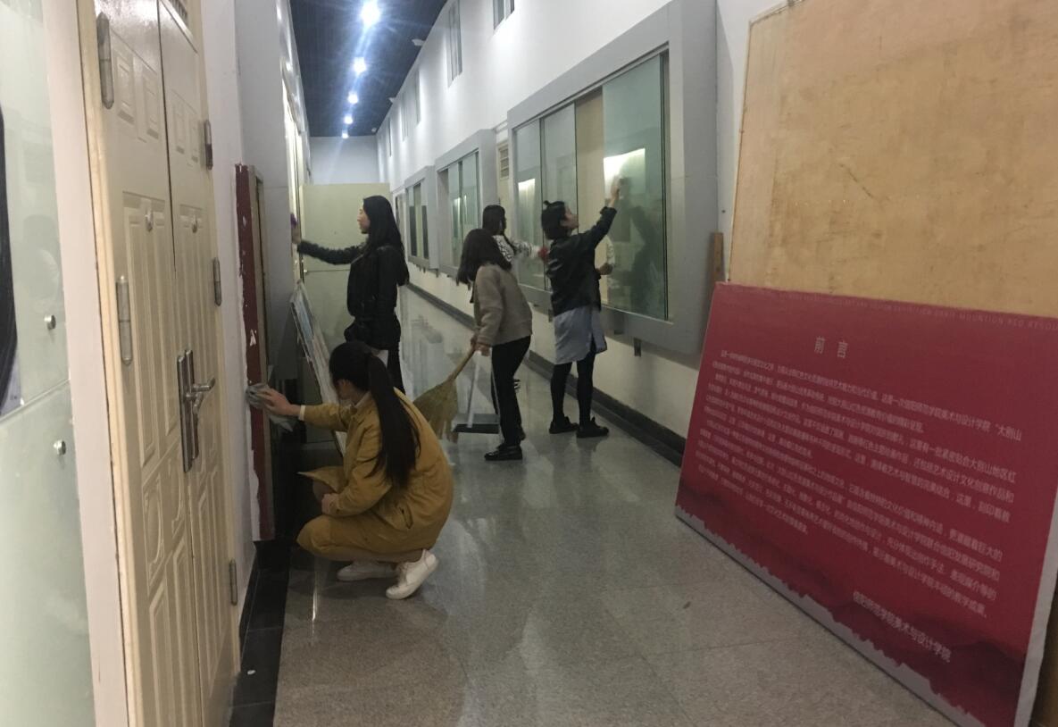 培训班负责人首先为学员们分好组,并为每个小组划分好责任区域。清扫过程中,各位组长带领学员们,团结互助、默契配合,以高度的责任心,和端正的态度认真清扫,不放过任何一个角落。面对一些难以打扫的卫生死角,学员们发挥迎难而上、坚持不懈的精神,运用手中的工具或铲或撬,竭尽自己的能力将其清扫干净。在大家的努力下,艺术楼的公共区域被打扫的干干净净。学员们表示,虽然辛苦,但看到艺术楼变得干净整洁,觉得这些劳累都是值得的。最后,全体学员与党旗合影留念。