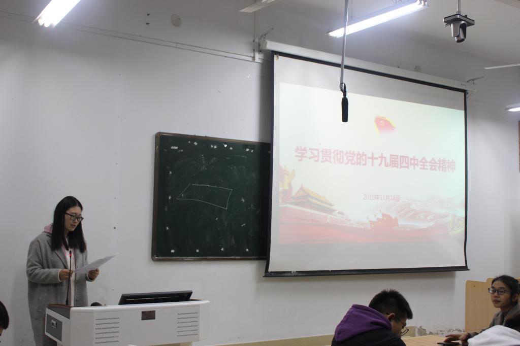 为深入学习贯彻党的十九届四中全会精神,扎实开展主题教育。11月18日,我院组织学生党员在艺术楼308开展党的十九届四中全会精神专题学习活动。学生党支部书记饶海虹、胡霁芳、张锐、郑波及全体在校学生党员共同参加了此次活动。
