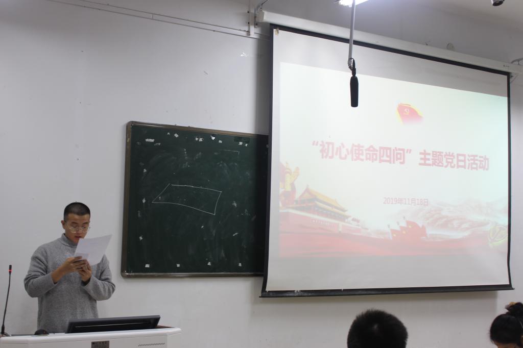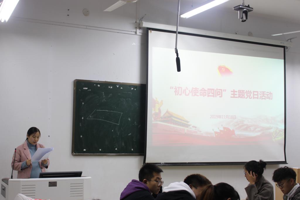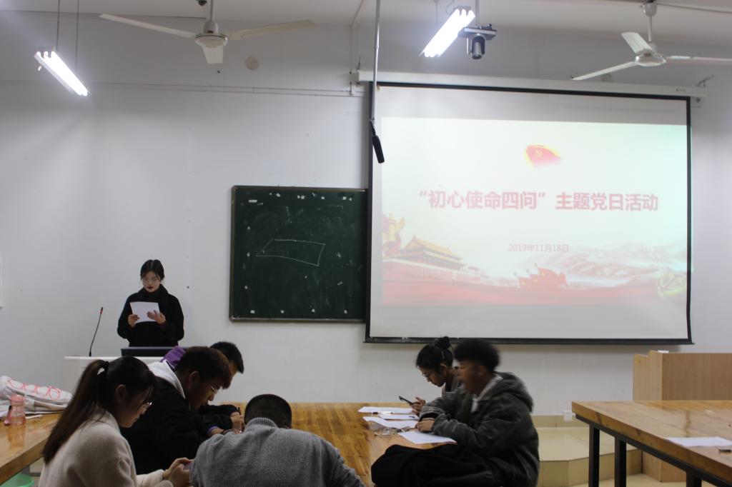 为深入推进“不忘初心、牢记使命”主题教育,11月18日,我院学生党支部在艺术楼308室、217室顺利开展了“初心使命四问”主题党日活动。各学生党支部书记及全体在校学生党员共同参加了此次主题党日活动。