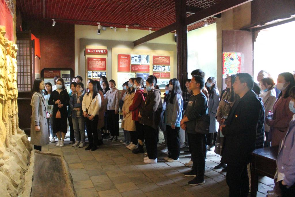 在何家冲政治文化广场前,全体党员在专职组织员饶海虹的带领下,重温入党誓词,面对党旗庄严宣誓,牢记入党初心,坚守理想信念。在讲解员的引导下,大家集体参观了红二十五军军部旧址—何氏祠,通过一件件珍贵的革命文物,一幅幅生动的革命画面,详细了解了红二十五军的发展历程和革命先辈的英雄事迹。随后大家一同重走“长征路”,切身感受红军长征时的艰辛与不易,感悟红二十五军坚韧不拔的长征精神和坚定不移的革命意志。在银杏树下,学生代表王晏殊为大家讲述了党史故事《永不熄灭的红色之火》。