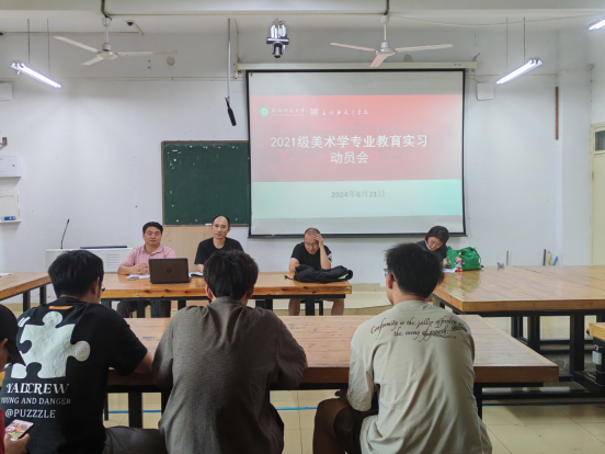 为做好2021级美术学专业教育实习工作,提升我院人才培养质量。6月21日,我院在艺术楼306教室成功召开了2021级美术学专业教育实习动员会。副院长张江波、美术学系教研室主任潘静、专业教师蔡森林、辅导员郑波及2021级美术学专业学生线上线下共同参会,会议由郑波主持。