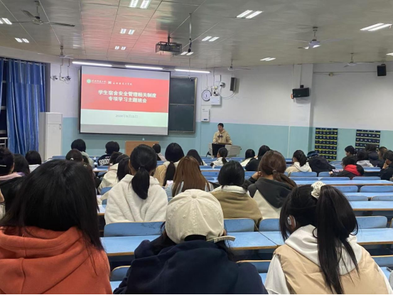 为进一步规范学生日常,改善学生宿舍生活环境,防范宿舍火电风险隐患,增强学生的安全意识,9月15日,williamhill威廉希尔在艺术楼召开学生宿舍安全管理相关制度专项学习主题班会。各新生班主任主持会议,2024级全体学生参加会议。