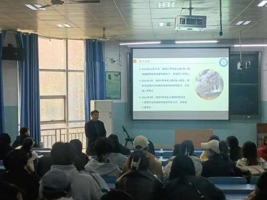 为增强学生安全意识,普及校园安全知识。3月17日至20日,我院落实学校部署,开展了为期四天的校园安全主题宣讲活动,实现全院班级、学生及班主任全覆盖。院党委副书记周明成专题部署,建立“班主任现场督导+学生干部动态巡查”双重保障机制,严格执行“课前手机统一管理、课中纪律动态维护、课后效果跟踪反馈”全流程管理,确保安全教育走深走实,出实效。