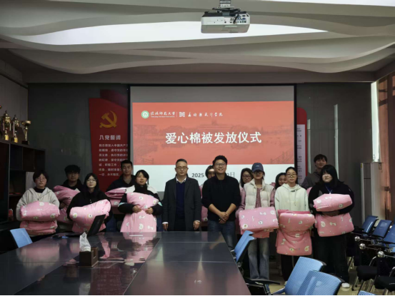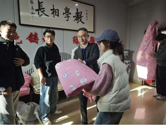 为切实保障家庭经济困难学生温暖过冬,11月20日,我院开展了爱心棉被发放活动,为2025级家庭经济困难学生送去关怀与温暖。学院党委副书记周明成与新生辅导员共同参加了此次送温暖活动。