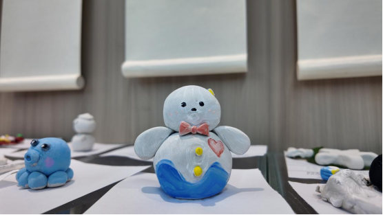 活动现场配备齐全的各色石塑粘土及创作工具,同学们专注投入手工创作,将天马行空的想象转化为手串、胸针、冰箱贴等独具个性的作品。指尖流转间,平凡材料被赋予鲜活生命力,现场氛围温馨而热烈,充满创作的愉悦与成就感。
