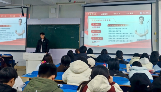 为发挥优秀学子榜样引领作用,助力美院学子明晰学业航向,12月17日,奖学金标兵宣讲活动在艺术楼307教室举行。3名奖学金标兵获得者、200余名学子参与活动,辅导员杨广干主持。
