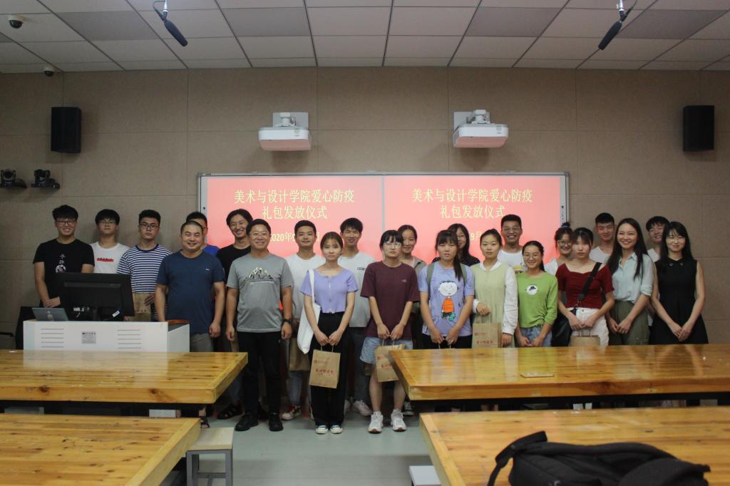 9月16日,我院于艺术楼217教室举办爱心防疫包发放仪式。党委副书记杨轶中,团委老师郑波,班主任邹青宸、张暄以及学生代表共同参加。发放仪式由杨轶中主持。