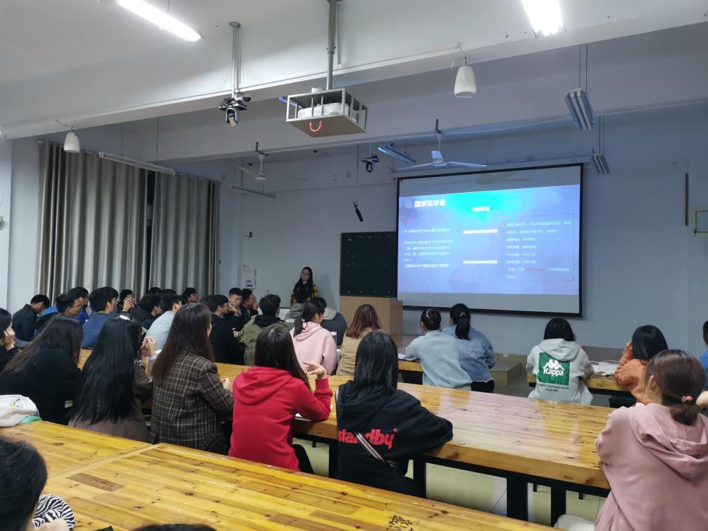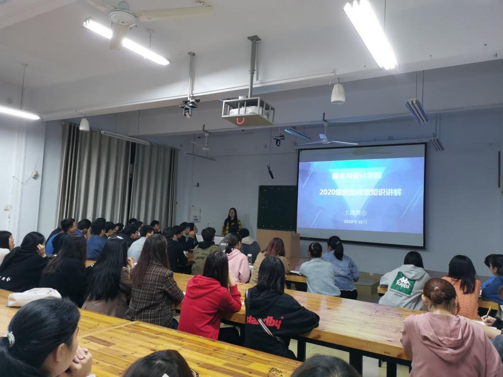 为了使2020级新生进一步地了解国家资助政策,我院10月29日晚于艺术楼308教室召开了新生资助政策宣讲会,我院辅导员胡霁芳主持会议。