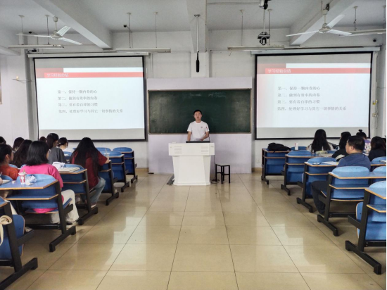 马克思主义学院的国家奖学金获得者刘鹏,给同学们做了题目为“以奋斗之笔,书青春华章”的宣讲。他向同学们讲述了自己的奋斗历程,分享了自己的学习经验,号召同学们做好规划,保持一颗内卷的心,做到有效率的内卷,做到高度自律。教育科学学院的校园明星刘雨婧,以“踏踏实实走好每一步你走的每一步都算数”为题和同学们做了分享。她大学期间身兼数职,做到了学习与工作统筹兼顾,成绩名列前茅,更是八块金牌的获得者,全宿舍以优异成绩全部考研上岸,用实际行动向同学们展示了人生无极限,要相信自己,要勇于挑战,要敢于坚持,不要为自己设限。旅游学院的自强之星获得者刘媛媛以”宝剑锋从磨砺出,梅花香自苦寒来”为引,用自身动人经历事迹告诉大家要胸怀大志,砥砺前行,鼓励同学们在人生中一定要奋发向上,穷且益坚,心怀感恩地前行。