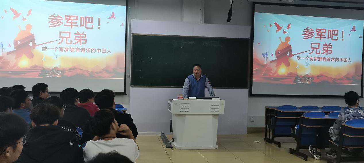 为推进我院大学生应征入伍工作,强化征兵政策宣传,鼓励学生积极参军,提高兵员征集质量,营造良好的拥军参军氛围。4月6日至4月8日,我院武装干事郑波及各班班主任先后在艺术楼307举办了大学生征兵入伍宣讲会,学院全体男生及部分有入伍意向的女生分批次参加了会议。