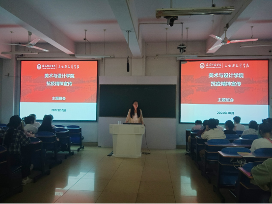 由于当前疫情处于较为严重复杂时期,疫情防控工作万分重要,10月8日,我院开展22级新生入学教育——抗疫精神宣传主题班会,以增强新生疫情防控意识,筑牢安全屏障。会议由新生班主任胡霁芳主持,全体22级新生共同参加。