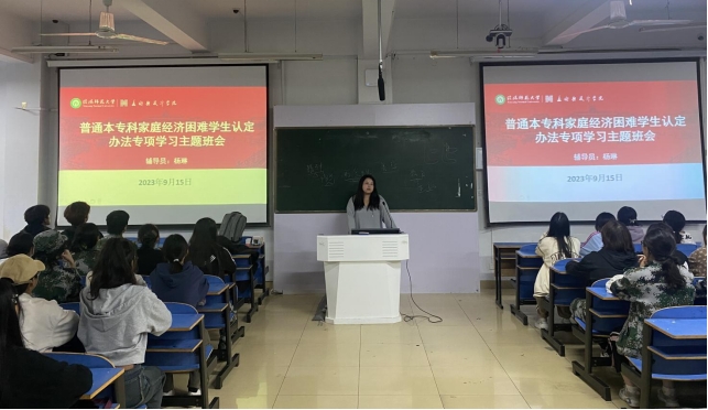 为了让学生对资助政策有更深的认知和理解,公平、公正、合理地分配资助资源,切实保证国家制定的各项高校资助资源,能够落实到家庭经济困难学生的身上,9月15日晚上,williamhill威廉希尔在艺术楼307召开普通本专科家庭经济困难学生认定办法专项学习主题班会。本次班会由新生班主任杨琳主持,2023级全体新生共同参加。