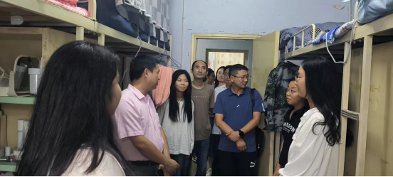 走访过程中,兰洋与同学们进行亲切交流,详细询问同学们的生活情况,“你来自哪里”“住宿环境适应吗”“学校食堂饭菜是否可口”……向新生表达了热烈欢迎和亲切关怀。在得知同学们一切顺利,也很适应在校生活后,兰洋勉励大家要珍惜在校时光,努力学习,做到不负青春、不负韶华。