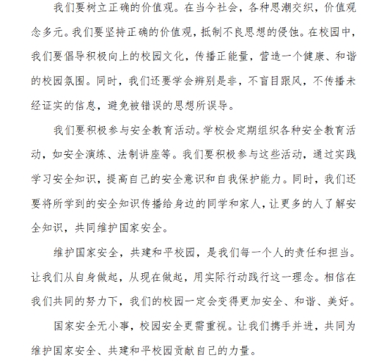 为普及国家安全知识,提升师生安全意识,我院学生会宣传联络部于4月18日在线上举办了“维护国家安全,共建平安校园”主题征文活动。