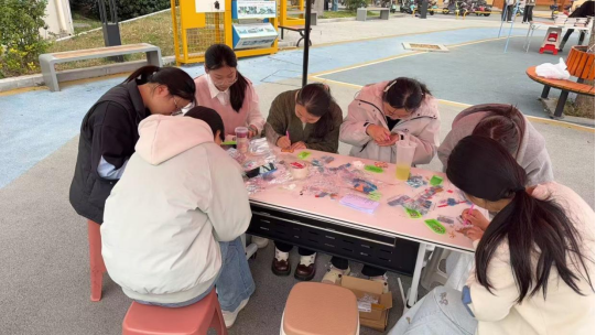 现场气氛浓厚,同学们在工作人员引导下领取不织布、钻石贴等材料,围绕“展现女性风采、传递温暖力量”主题进行创作。大家将对身边女性的敬意融入一颗颗钻石的粘贴中,一幅幅饱含心意的作品逐渐成型。活动不仅提供了动手实践的平台,也在美育中营造了尊重女性、关爱女性的良好氛围。