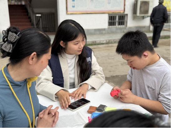 活动现场暖意融融,志愿者们以一对一方式陪伴特殊儿童创作,结合孩子们的认知和动手能力,耐心引导他们用揉、捏、塑等手法制作黏土造型。对情绪敏感、动手迟缓的孩子,志愿者们温柔安抚、耐心鼓励,引导他们大胆尝试。