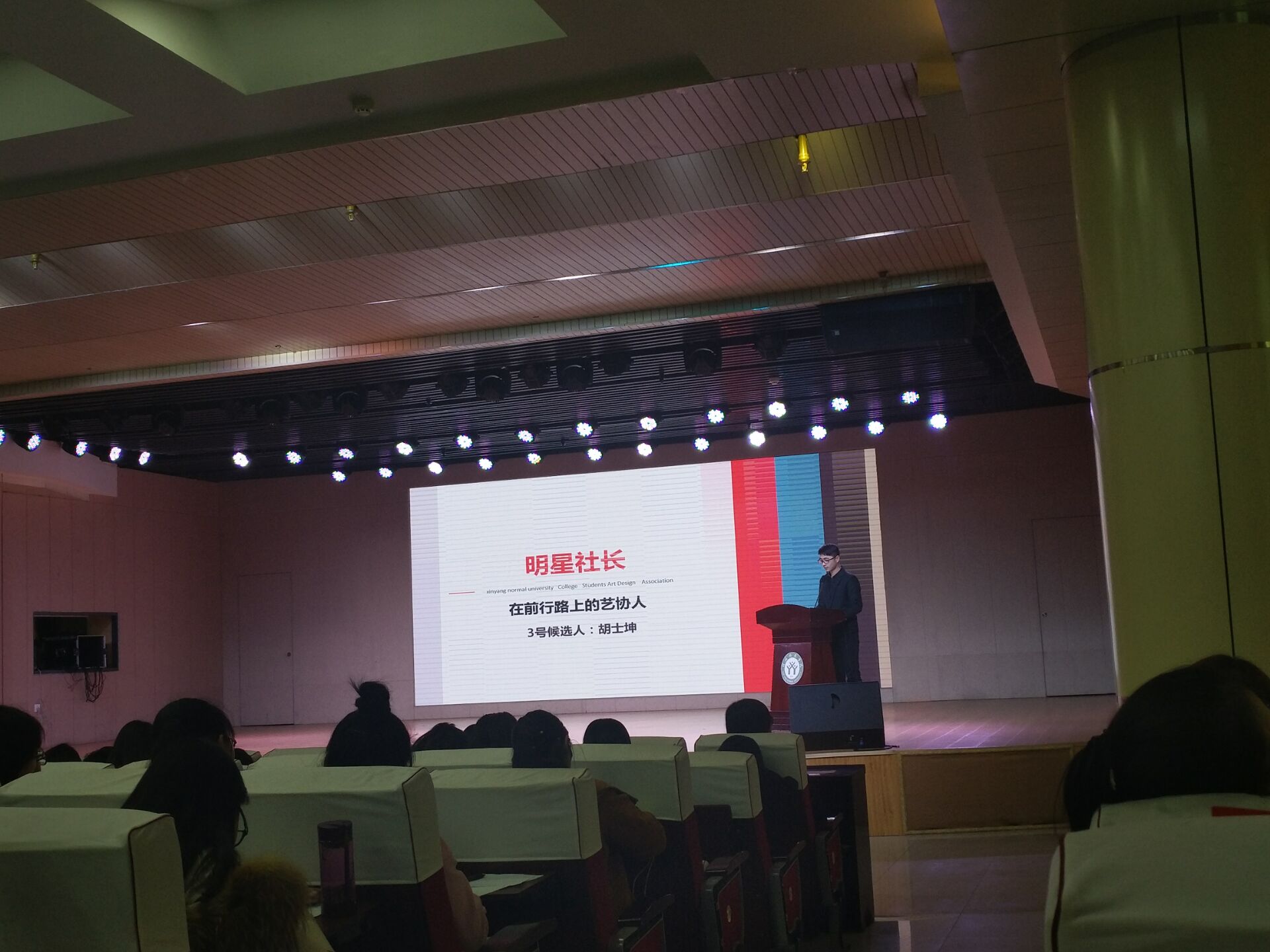 12月8日,由校团委,社团联合会主办的“明星社长”选拔赛在理科楼报告厅成功举办,其中williamhill威廉希尔第十一届大学生艺术设计协会会长胡士坤作为候选人之一参与评选,各院团总支书记,社团指导老师担任评委,现场气氛热烈,座无虚席。