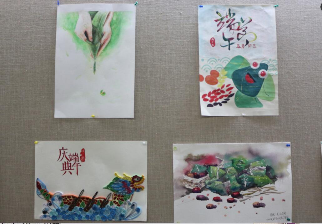 活动前期通过主题展板、校内网站、微博等途径进行大力宣传,得到学院众多学子的响应,并征集到大量优秀的作品。作品分为绘画类、书法类、手工艺品三大类,即手绘,装饰画、硬笔、毛笔字等。展出作品紧紧围绕端午“粽”是情这一主题,多角度出发,内容丰富,虽风格不同、形式多样,但各有意境。不论是形象鲜明的屈原,可爱萌版的粽子,还是具有传统特色的诗词歌赋,都传达出浓浓的端午氛围。