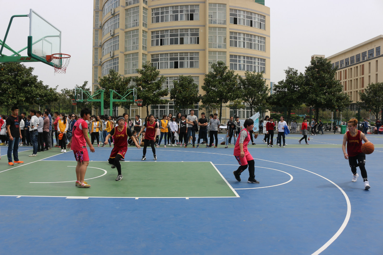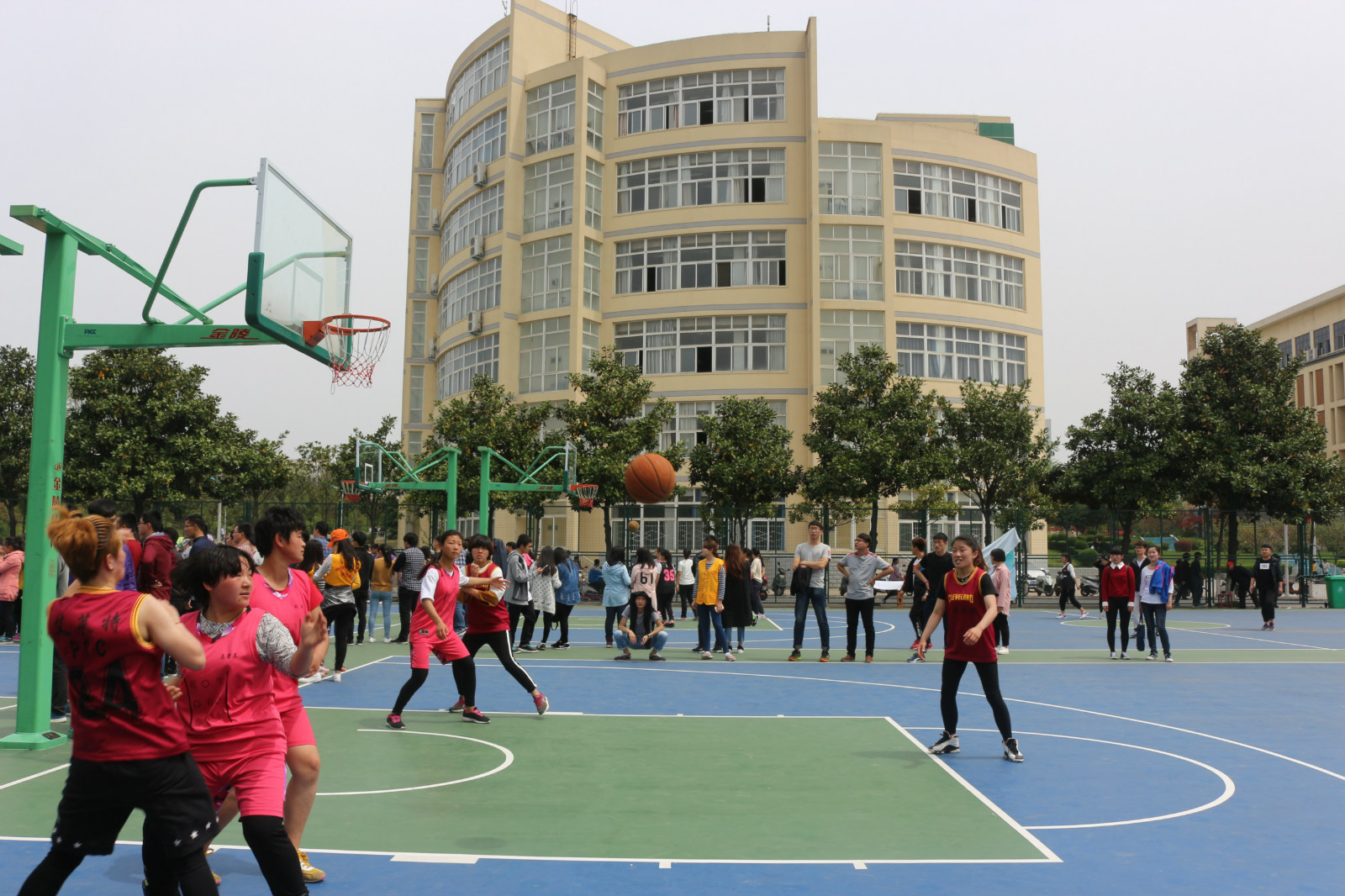 比赛伊始,双方队员摆好阵势,等待发球,数学学院队员夺得首球并顺利进球。我院队员也毫不示弱,随后也连进几球。顿时,场上观众也热情高涨,欢呼声、呐喊声不断。在我院队员默契的传球、运球、投篮中,我院比分逐渐领先。上半场,我院以22:15的比分暂时领先。下半场比赛中,双方都调整策略,积极挑战,互不相让,比分更是多变。比赛最后,双方都筋疲力尽,但依然坚持到底。经过40分钟的激烈角逐,比赛结束,虽然我院遗憾比分落后,但勇往直前的精神仍在。