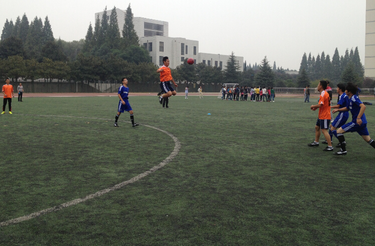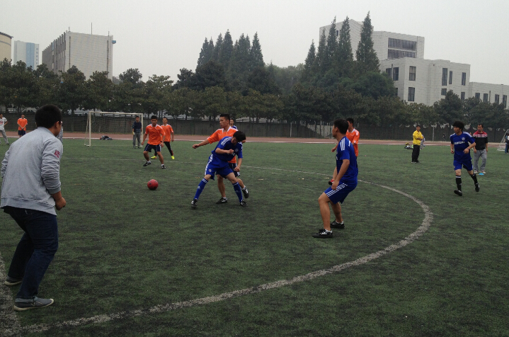 随着一声哨响,比赛正式开始,双方队员展开激烈拼抢,我院凭着激昂的斗志、默契的配合率先踢进一球,引得观众一阵阵欢呼和喝彩。在上半场以1:0领先于体育学院足球队。中场休息时,队员相互加油打气,下半场开始,我院足球队与体育学院足球队展开了持久的拉锯战,使得比赛进入白热化阶段,比赛的最后时刻,由于我院队员的失误,给了对方球员点球得分的机会,最终双方球队以1:1的比分结束了本场比赛。