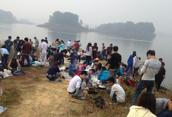 经过一个多小时的路程,顺利抵达目的地——燕尾岛。随后,大家开始紧张而有趣的野炊活动。活动过程中,大家分工明确、井然有序,积极参与洗菜、切菜、搭灶台、找木材等工作。不一会整个燕尾岛弥漫着烧烤香味,现场瞬间成为了美食天地,各部门相互分享亲手烧制的不同美食,欢笑声也荡漾开来。饭后,大家清理餐后垃圾,并组织了即兴表演,男生帅气的走秀,女生优美的舞姿,使得现场笑声不断,本次野炊在同学们合唱《朋友》后圆满结束。最后,学生会全体成员合影留念。