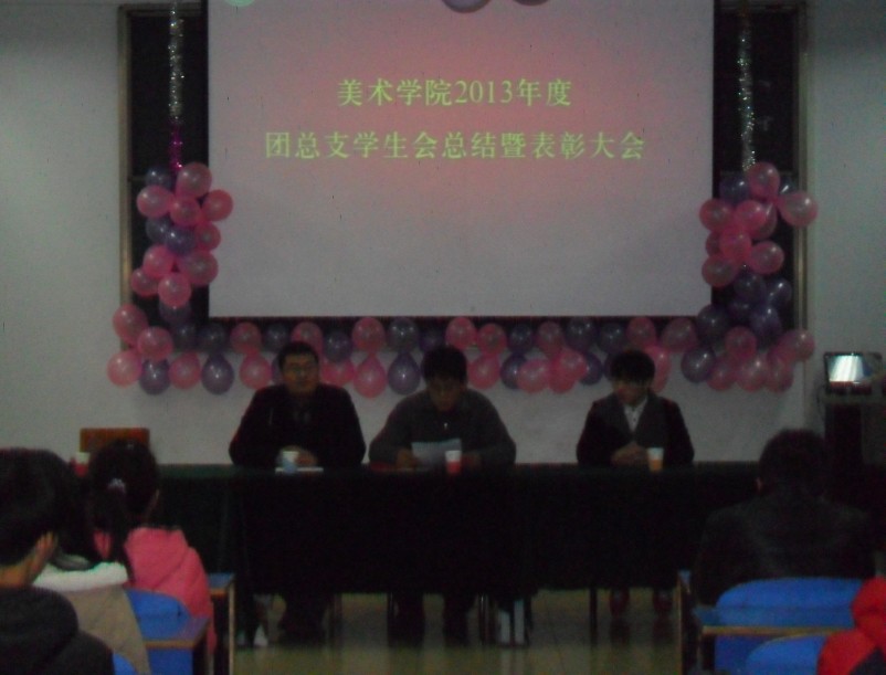 12月26日美术学院2013年年终总结表彰大会暨2014年元旦晚会于艺术楼307教室举行,美术学院党总支副书记李孝民,团总支书记周贤亮,及学生会全体成员共同参加了本次活动。