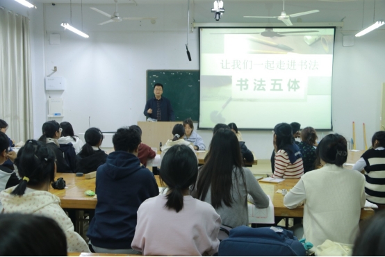 讲座中,王培召老师凭借其渊博的学识和深厚的艺术素养,引领师生们走进了书法艺术的殿堂。他详细介绍了书法的历史渊源、发展脉络及诸种书体的独特魅力,并结合自己的创作实践,分享了书法学习的宝贵技巧与心得。