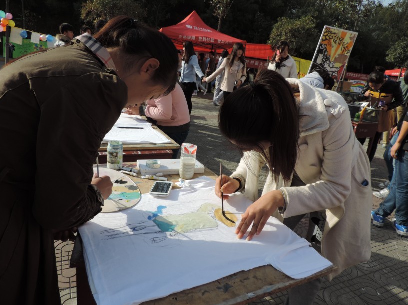 11月17日由美术学院艺术设计协会主办的“服装彩绘”活动在八餐广场举行,共40余名绘画爱好者参加了本次活动。