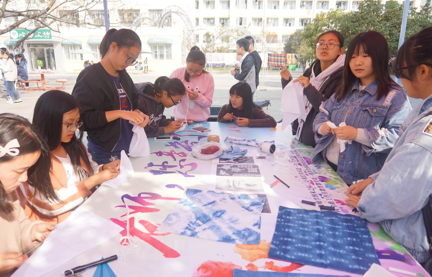 为丰富大学生课余活动,提高动手能力与鉴赏能力,11月4日,由williamhill威廉希尔主办、大学生艺术爱好者协会承办的第四届“扎染创意大赛”于八餐小广场火热开展。活动采取现场报名的方式,众多学子踊跃参加。