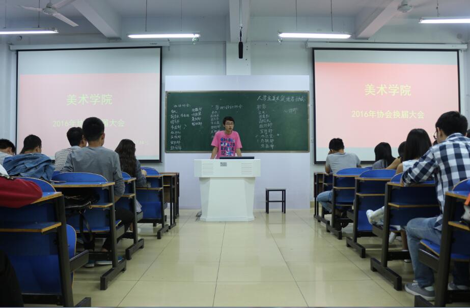 5月24 日下午,隶属于美术学院的大学生书法协会、大学生美术爱好者协会、大学生艺术设计协会于艺术楼307举行换届大会。我院团总支学生会主席熊佳萌、副主席贾珍、学生会部分成员、三个协会会长及各位申请人共同参加此次大会。会议由冯启乐主持。