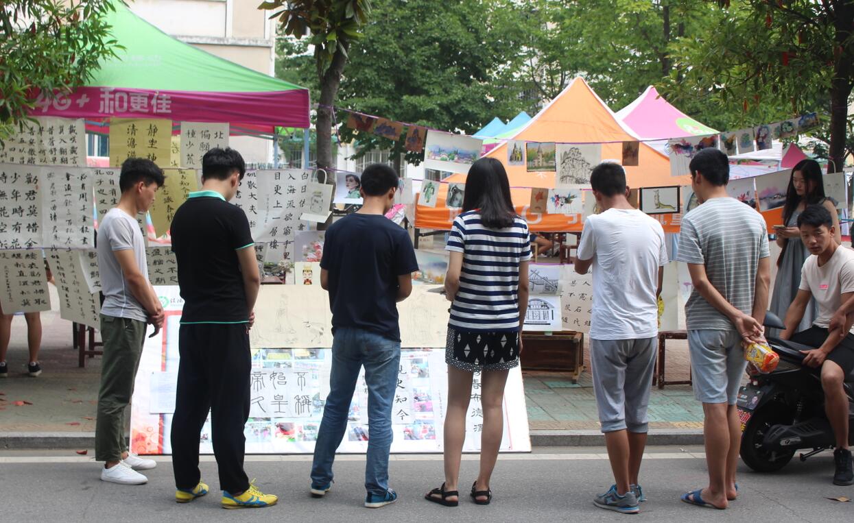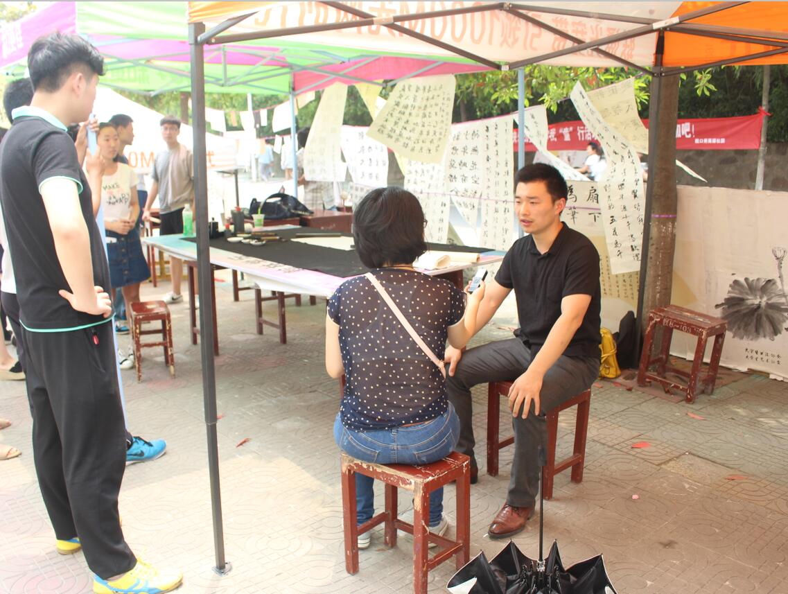 5月21日上午,由williamhill威廉希尔主办,大学生艺术设计协会,大学生书法爱好者协会及大学生美术爱好者协会联合承办的“共舞社团风采,话我最美师院”活动在八餐小广场成功举办。我院老师张峰,陈馨莅临现场进行指导。