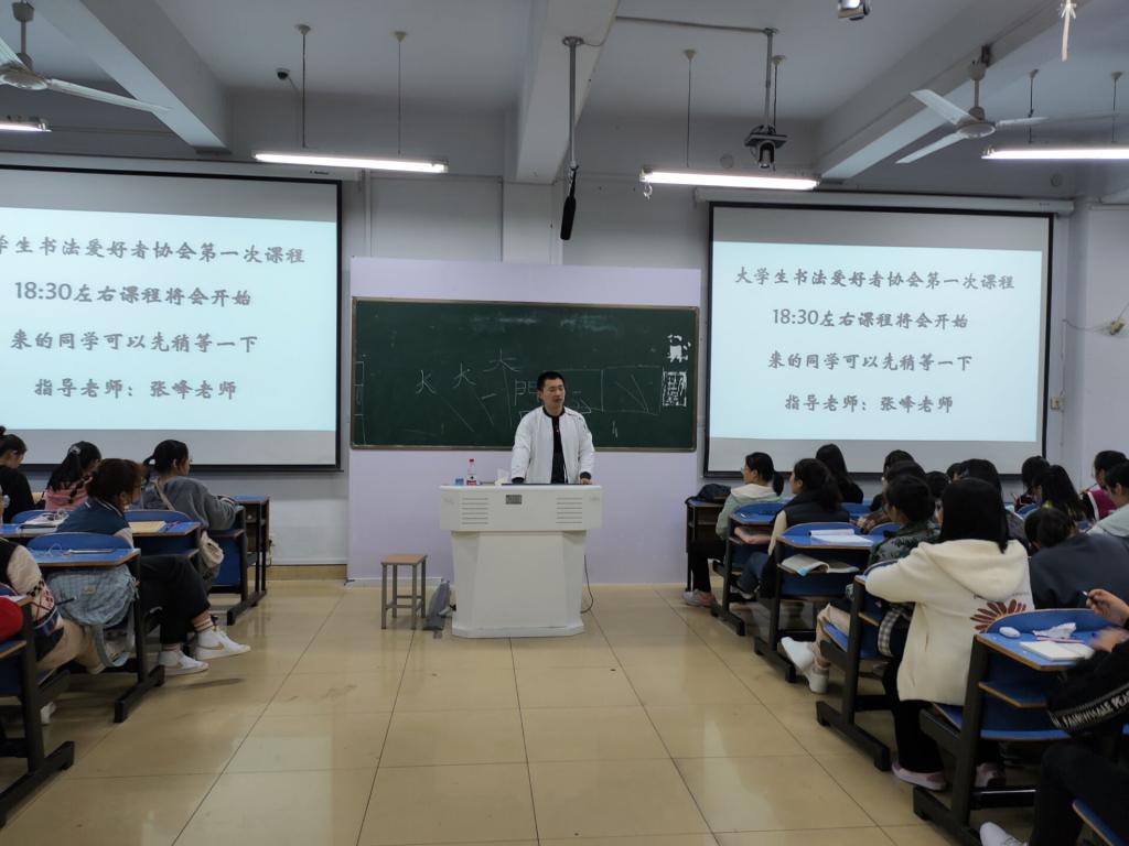 伴随着大学生书法爱好者协会招新工作的结束,为了使新生对大学生书法爱好者协会有更多的了解,大学生书法爱好者协会于11月1日在艺术楼307召开第一次全会,指导教师张峰出席了此次会议。