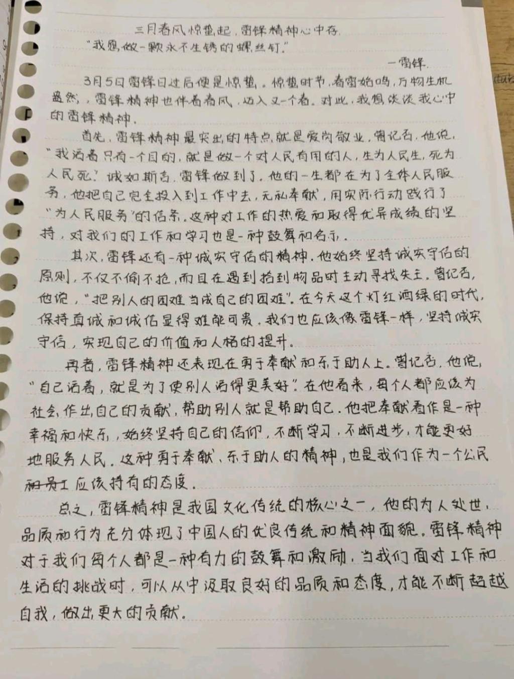 本次团课通过讲解雷锋精神和播放电影《雷锋的微笑》,丰富了同学们对雷锋同志的了解,使乐于助人和爱国主义的雷锋精神深深扎根于同学们的心中。雷锋精神内容为热爱党、热爱国家、热爱社会主义的崇高理想和坚定信念;服务人民、助人为乐的奉献精神;干一行爱一行、专一行精一行的敬业精神。雷锋精神不仅是做好事这么简单,雷锋在学习上的钉子精神、在批评和自我批评方面的敢于直言的精神、在是与非的选择上的立场坚定的精神、在对待同志上的热情的精神、在对待工作上的高度负责的精神等方面都值得同学们认真学习。电影最后,团课负责人表示作为当代新青年,应该砥砺奋进,不负韶华,弘扬雷锋精神,争做新时代“雷锋”。同学们纷纷在线上写下致敬留言。活动结束后,同学们手写团课感悟并上传花絮。