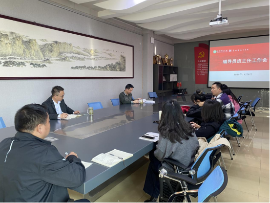 11月6日下午,我院于艺术楼204会议室召开辅导员班主任工作会议。学院党委书记兰洋、副书记周明成以及全体辅导员、班主任到场参会。