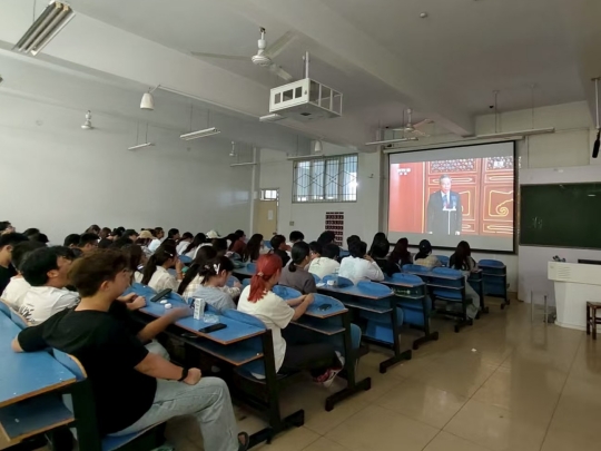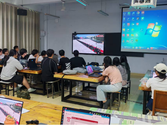 9月3日上午9时,北京天安门广场举行纪念中国人民抗日战争暨世界反法西斯战争胜利80周年大会。我院组织师生党员、入党积极分子于实训楼二楼艺言堂集中观看九三阅兵,其他同学在教室同步线上观礼。