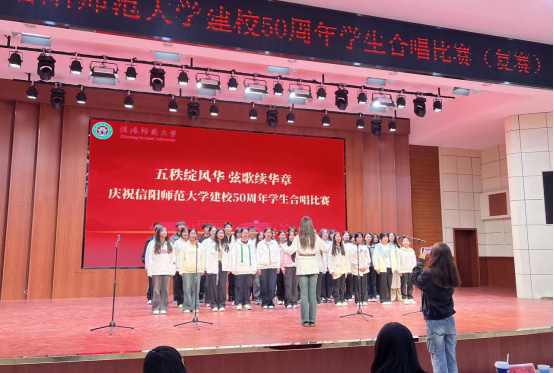 10月12日,学生合唱比赛(复赛)在逸夫楼报告厅举行,学院学生合唱团登场献唱,以歌声传递对母校的深情与祝福。10月21日,教职工合唱比赛在艺术楼音乐厅启幕,教师合唱队身着统一服装,演绎《托起民族的希望》《明天会更好》,演唱后者时背景大屏同步播放学院制作的校庆祝福视频,歌声与影像交织共寄憧憬,最终凭借整齐和声与真挚情感荣获二等奖。